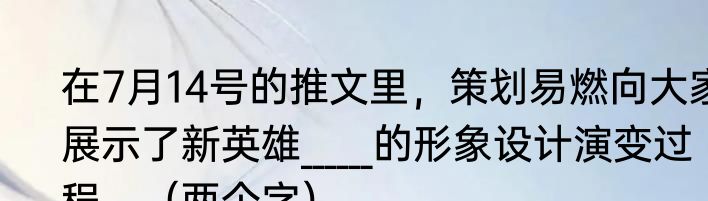 在7月14号的推文里,策划易燃向大家展示了新英雄______的形象设计演变过程。(两个字)