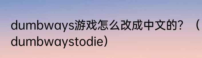 dumbways游戏怎么改成中文的?(dumbwaystodie)