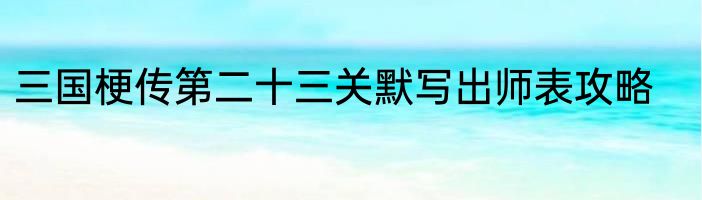 说起三国梗传第二十三关默写出师表攻略,会有不少人想要了解,那么下面来看看三国梗传第二十三关默写出师表攻略的有关内容。