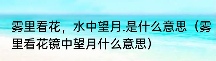 雾里看花,水中望月.是什么意思(雾里看花镜中望月什么意思)