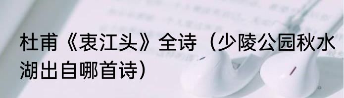 杜甫《衷江头》全诗(少陵公园秋水湖出自哪首诗)