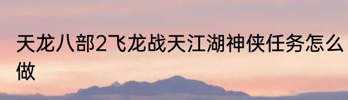 说起天龙八部2飞龙战天江湖神侠任务怎么做,会有不少人想要了解,那么下面来看看天龙八部2飞龙战天江湖神侠任务怎么做的有关内容。