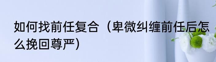 如何找前任复合(卑微纠缠前任后怎么挽回尊严)