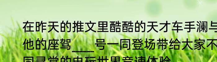 一、在昨天的推文里,酷酷的天才车手澜与他的座驾______号一同登场,带给大家不同寻常的电玩世界竞速体验!(三个字)