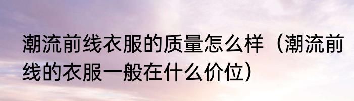 潮流前线衣服的质量怎么样(潮流前线的衣服一般在什么价位)