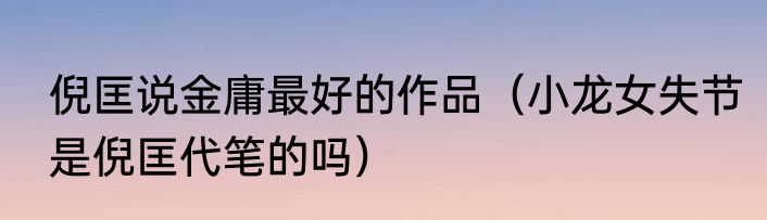 倪匡说金庸最好的作品(小龙女失节是倪匡代笔的吗)
