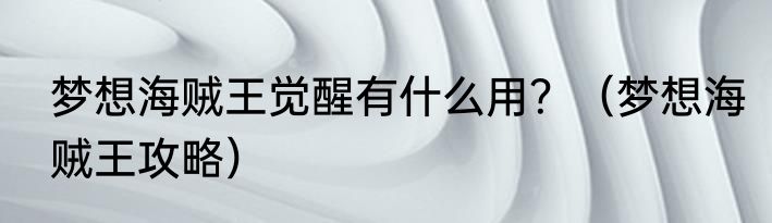 梦想海贼王觉醒有什么用?(梦想海贼王攻略)
