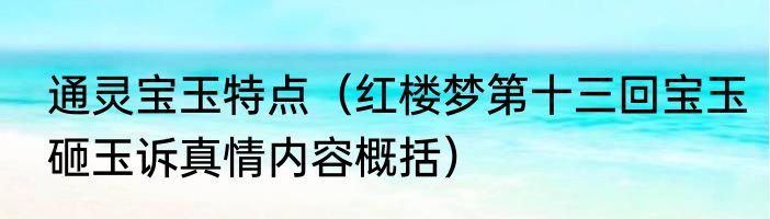 通灵宝玉特点(红楼梦第十三回宝玉砸玉诉真情内容概括)
