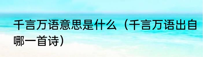 千言万语意思是什么(千言万语出自哪一首诗)