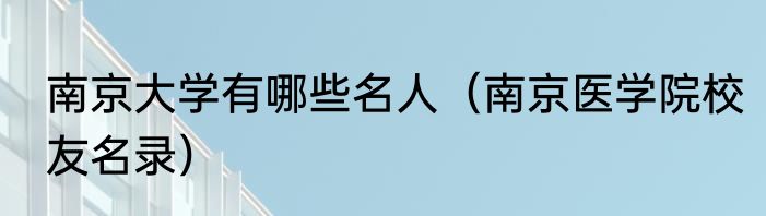 南京大学有哪些名人(南京医学院校友名录)