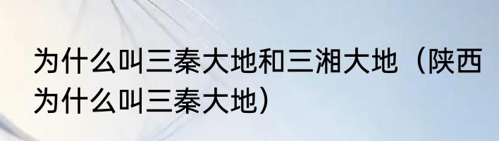 为什么叫三秦大地和三湘大地(陕西为什么叫三秦大地)
