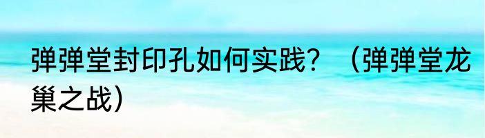 弹弹堂封印孔如何实践?(弹弹堂龙巢之战)