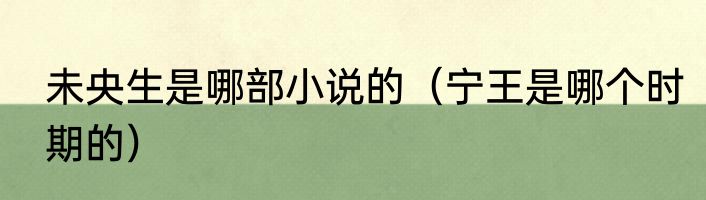 未央生是哪部小说的(宁王是哪个时期的)