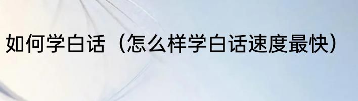 如何学白话(怎么样学白话速度最快)