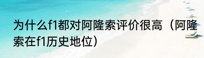 为什么f1都对阿隆索评价很高(阿隆索在f1历史地位)