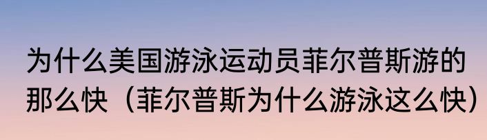 为什么美国游泳运动员菲尔普斯游的那么快(菲尔普斯为什么游泳这么快)