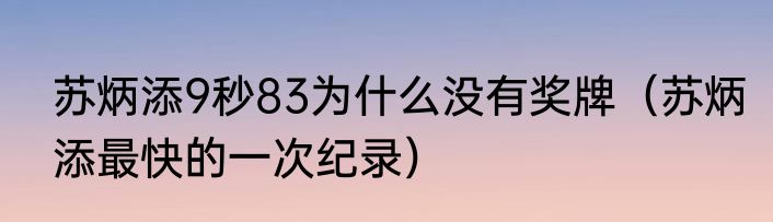 苏炳添9秒83为什么没有奖牌(苏炳添最快的一次纪录)