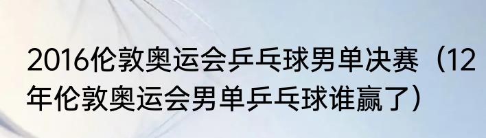 2016伦敦奥运会乒乓球男单决赛(12年伦敦奥运会男单乒乓球谁赢了)