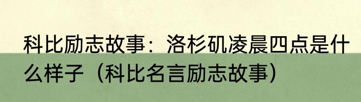 科比励志故事:洛杉矶凌晨四点是什么样子(科比名言励志故事)