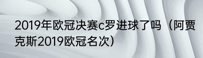 2019年欧冠决赛c罗进球了吗(阿贾克斯2019欧冠名次)
