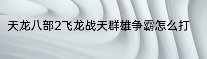 说起天龙八部2飞龙战天群雄争霸怎么打,会有不少人想要了解,那么下面来看看天龙八部2飞龙战天群雄争霸怎么打的有关内容。