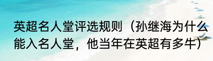 英超名人堂评选规则(孙继海为什么能入名人堂,他当年在英超有多牛)