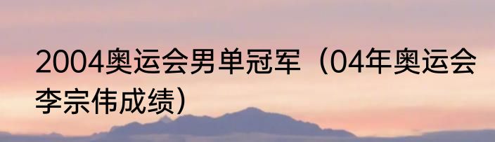 2004奥运会男单冠军(04年奥运会李宗伟成绩)