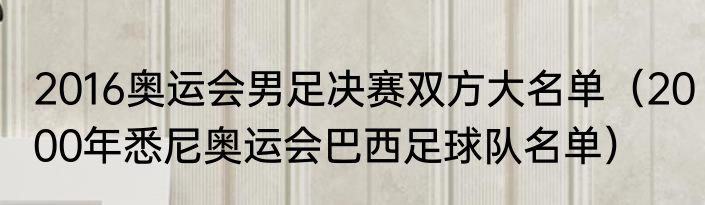 2016奥运会男足决赛双方大名单(2000年悉尼奥运会巴西足球队名单)