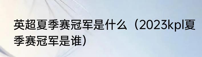 英超夏季赛冠军是什么(2023kpl夏季赛冠军是谁)