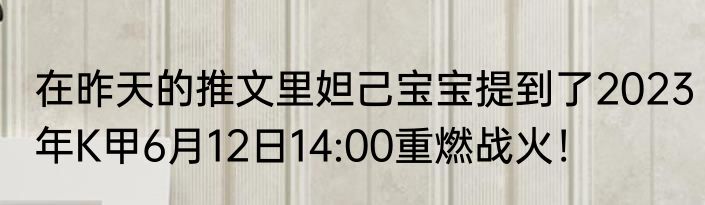 在昨天的推文里妲己宝宝提到了2023年K甲6月12日14:00重燃战火!