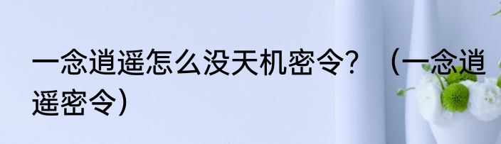 一念逍遥怎么没天机密令?(一念逍遥密令)