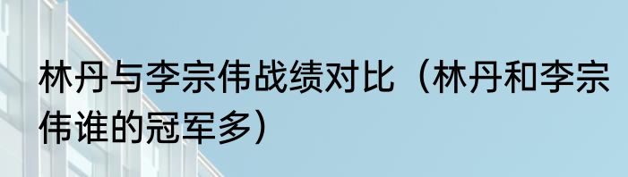 林丹与李宗伟战绩对比(林丹和李宗伟谁的冠军多)