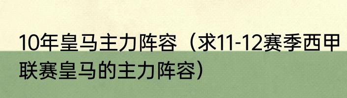 10年皇马主力阵容(求11-12赛季西甲联赛皇马的主力阵容)