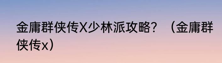 金庸群侠传X少林派攻略?(金庸群侠传x)