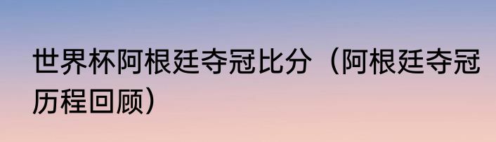 世界杯阿根廷夺冠比分(阿根廷夺冠历程回顾)