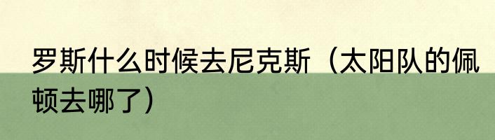 罗斯什么时候去尼克斯(太阳队的佩顿去哪了)