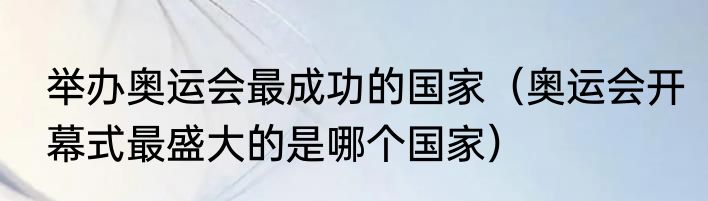 举办奥运会最成功的国家(奥运会开幕式最盛大的是哪个国家)