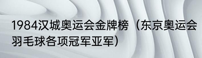1984汉城奥运会金牌榜(东京奥运会羽毛球各项冠军亚军)