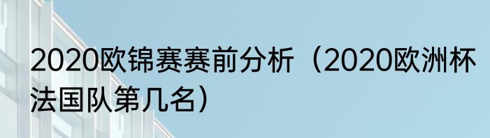 2020欧锦赛赛前分析(2020欧洲杯法国队第几名)