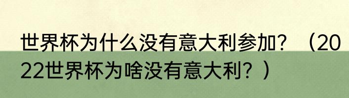世界杯为什么没有意大利参加?(2022世界杯为啥没有意大利?)