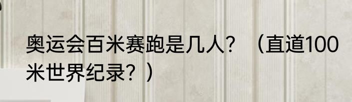 提及奥运会百米赛跑是几人?(直道100米世界纪录?)的相关内容,许多人不太了解,来看看小倩的介绍吧!