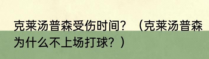 提及克莱汤普森受伤时间?(克莱汤普森为什么不上场打球?)的相关内容,许多人不太了解,来看看小婕的介绍吧!