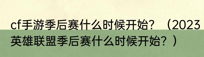 cf手游季后赛什么时候开始?(2023英雄联盟季后赛什么时候开始?)