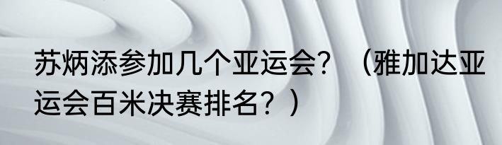 提及苏炳添参加几个亚运会?(雅加达亚运会百米决赛排名?)的相关内容,许多人不太了解,来看看小猛的介绍吧!