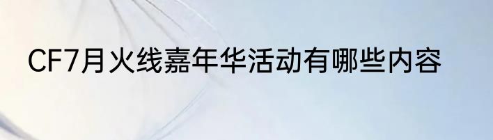 说起CF7月火线嘉年华活动有哪些内容,会有不少人想要了解,那么下面来看看CF7月火线嘉年华活动有哪些内容的有关内容。