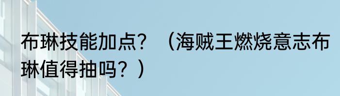 布琳技能加点?(海贼王燃烧意志布琳值得抽吗?)