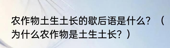 提及农作物土生土长的歇后语是什么?(为什么农作物是土生土长?)的相关内容,许多人不太了解,来看看小奉的介绍吧!