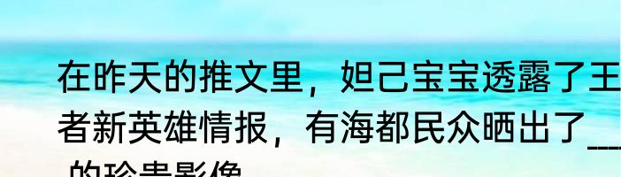 一、在昨天的推文里,妲己宝宝透露了王者新英雄情报,有海都民众晒出了______的珍贵影像。