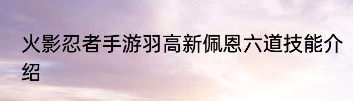 说起火影忍者手游羽高新佩恩六道技能介绍,会有不少人想要了解,那么下面来看看火影忍者手游羽高新佩恩六道技能介绍的有关内容。