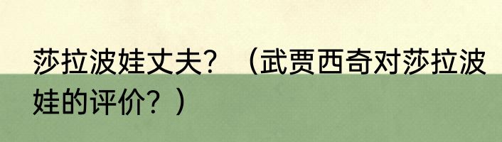 莎拉波娃丈夫?(武贾西奇对莎拉波娃的评价?)